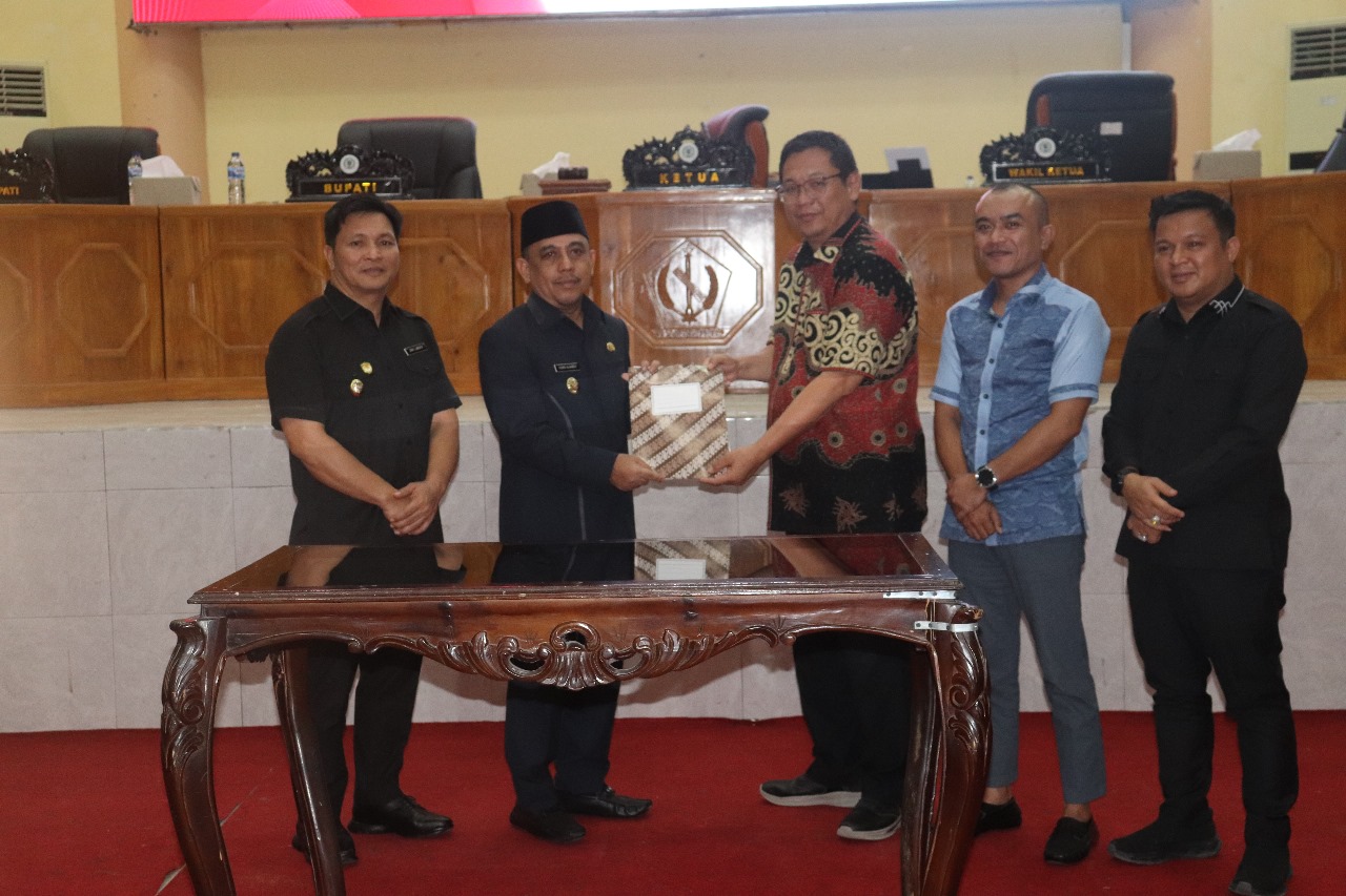 Dan dengan telah disetujuinya KUA-PPAS Bolmong tahun 2025, Bupati Bolmong bersama ketiga pimpinan DPRD Bolmong melakukan penandatanganan nota kesepakatan yang dilanjutkan dengan penyerahan dokumen nota kesepakatan oleh Ketua DPRD kepada penjabat Bupati Bolmong.*