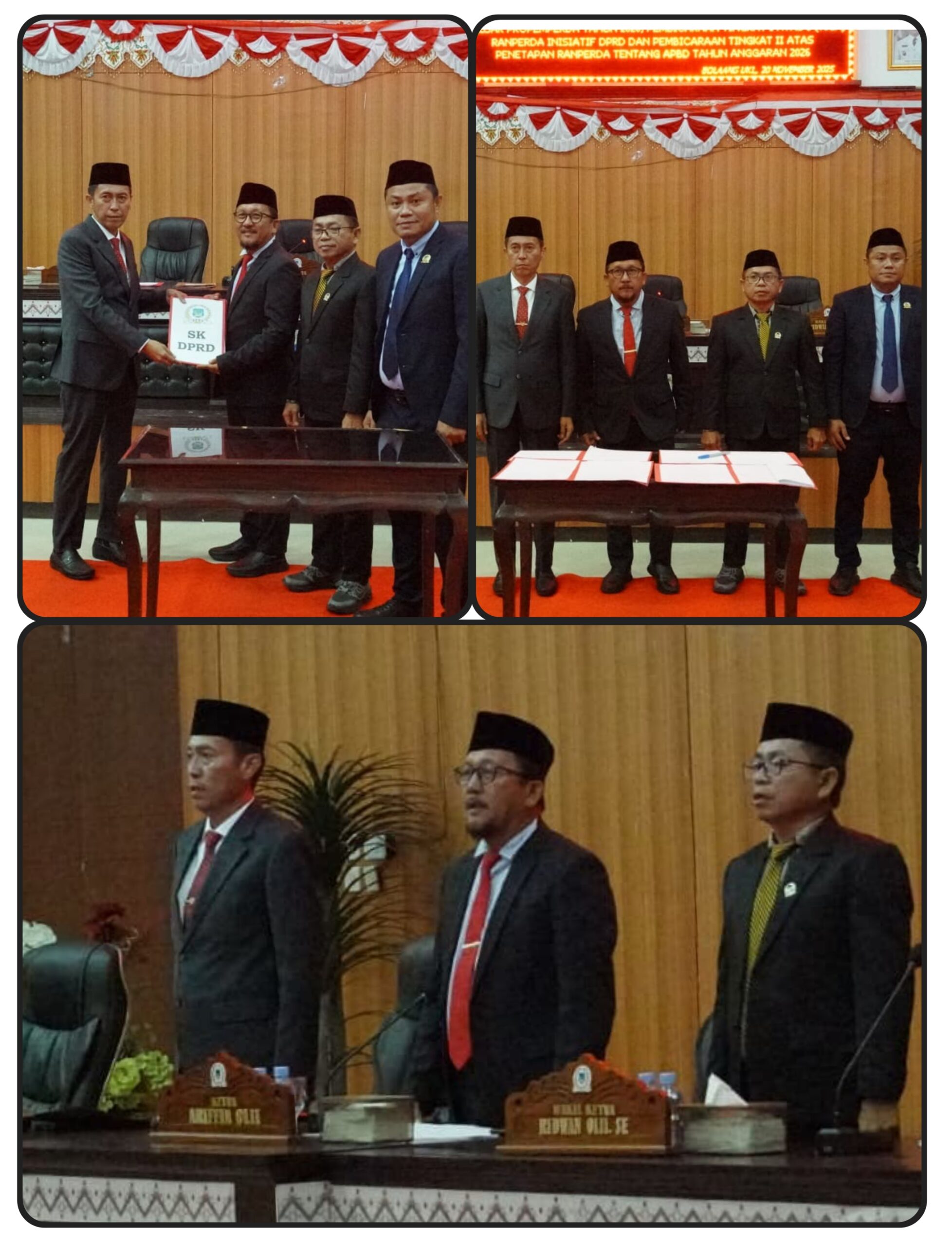 Rapat Paripurna yang dipimpin langsung oleh Ketua DPRD Bolsel Ir. Ariffin Olii didampingi dua Wakil Ketua serta dihadiri sejumlah anggota DPRD menetapkan tiga Ranperda prakarsa Pemda di luar Propemperda 2026, membahas tiga Ranperda inisiatif DPRD, serta menetapkan Ranperda APBD Tahun Anggaran 2026.