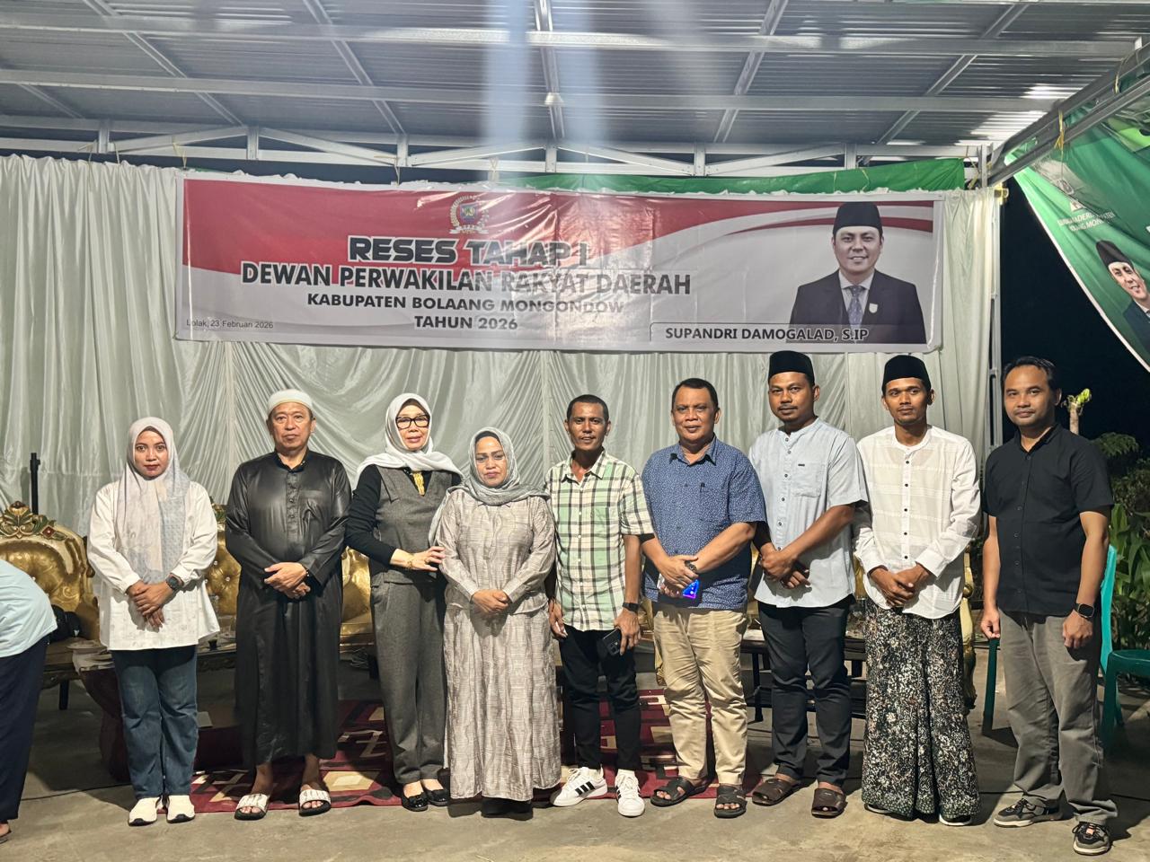 Sementara itu, Supandri Damodalag melaksanakan reses di Desa Lolak, Kecamatan Lolak. Kegiatan tersebut turut dihadiri pimpinan OPD, Forkopimcam, Sangadi, dan masyarakat setempat.