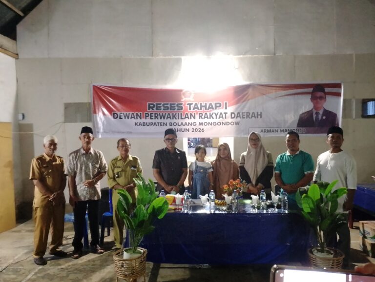 BOLMONG – Dua anggota Dewan Perwakilan Rakyat Daerah Kabupaten Bolaang Mongondow (DPRD Bolmong), Arman Mamonto dan Supandri Damodalag, turun langsung ke daerah pemilihan masing-masing dalam agenda reses tahap I tahun 2026, Senin (23/2/2026). Kegiatan ini menjadi momentum penting untuk menyerap dan menindaklanjuti berbagai aspirasi masyarakat.