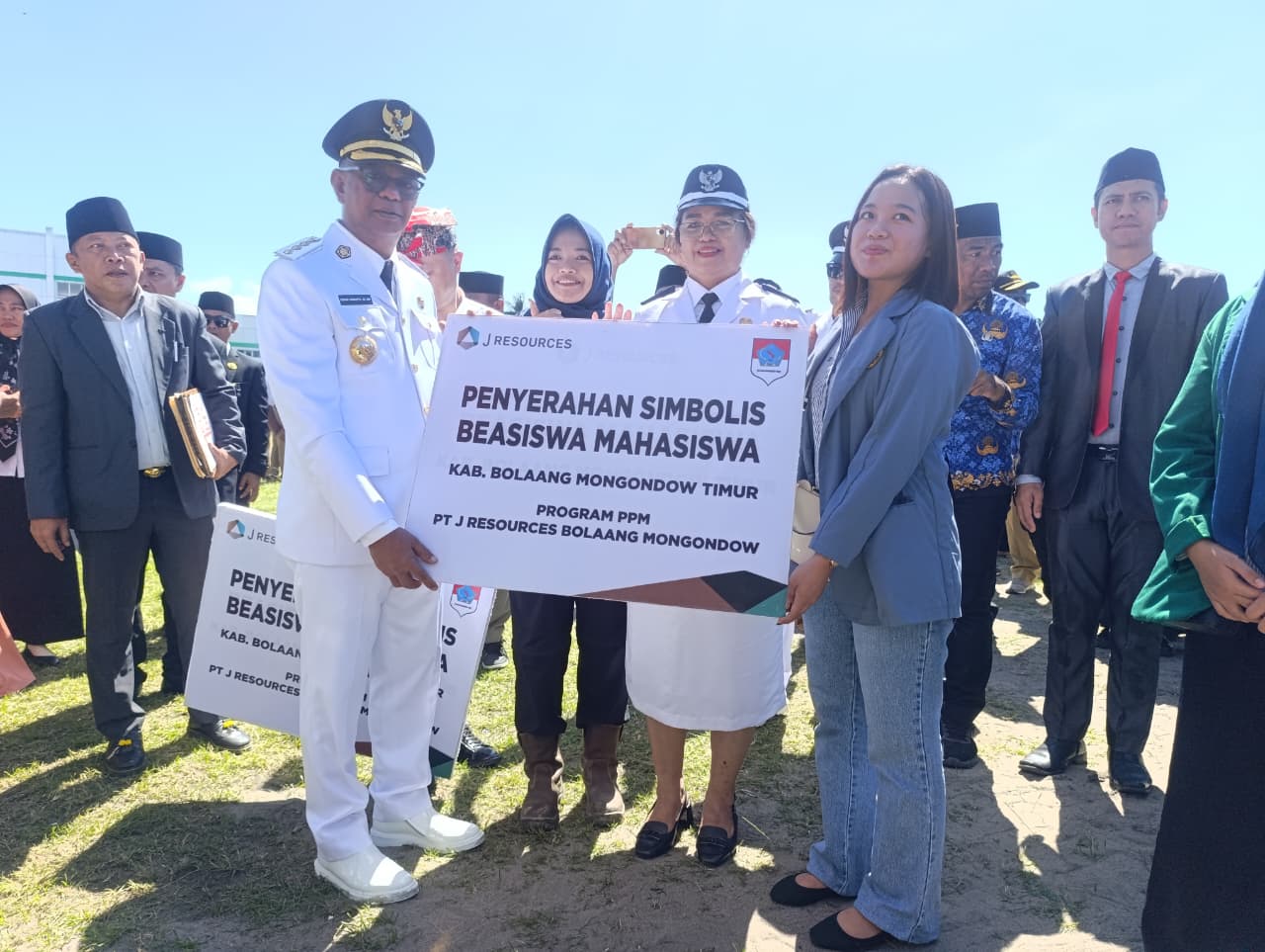 BOLTIM- Suasana peringatan HUT RI ke-80 di Tutuyan, Bolaang Mongondow Timur (Boltim), Minggu (17/8/2025), terasa semakin istimewa. Di tengah khidmatnya upacara bendera, terselip momen penuh haru dan kebanggaan. Putra-putri terbaik Boltim menerima beasiswa pendidikan dari PT J Resources Bolaang Mongondow (JRBM).