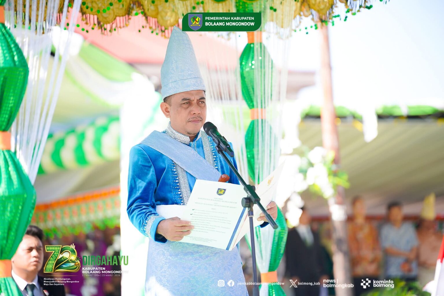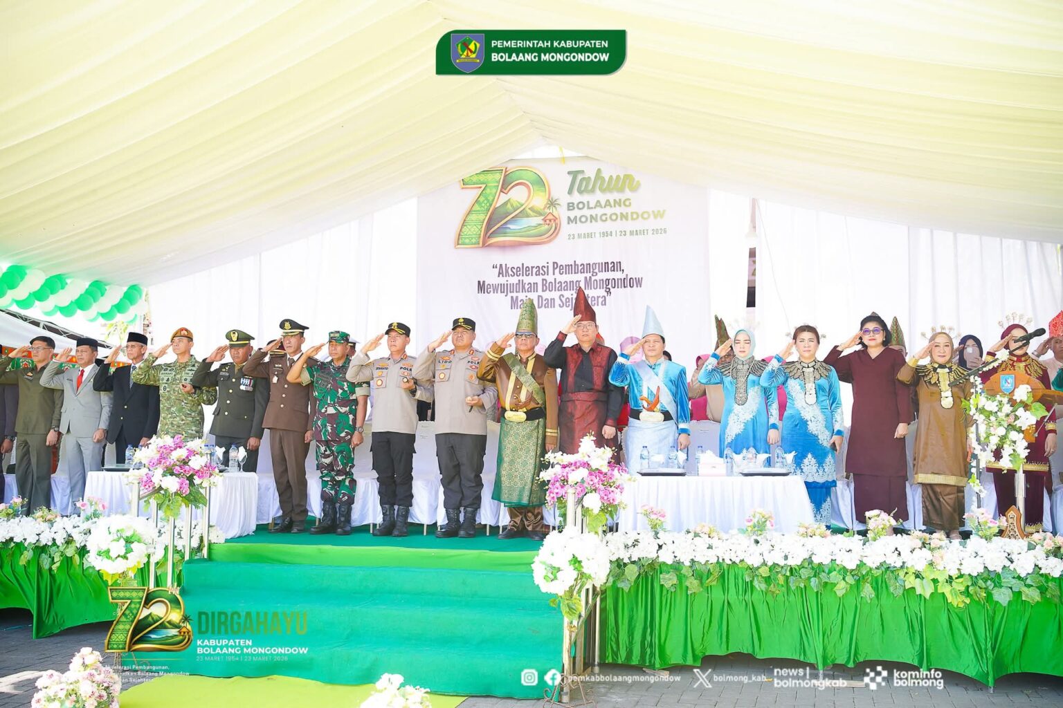 BOLMONG – Pemerintah Kabupaten (Pemkab) Bolaang Mongondow (Bolmong) menggelar apel perdana yang dirangkaikan dengan upacara peringatan Hari Ulang Tahun (HUT) ke-72 Kabupaten Bolaang Mongondow, Jumat, 27 Maret 2026.