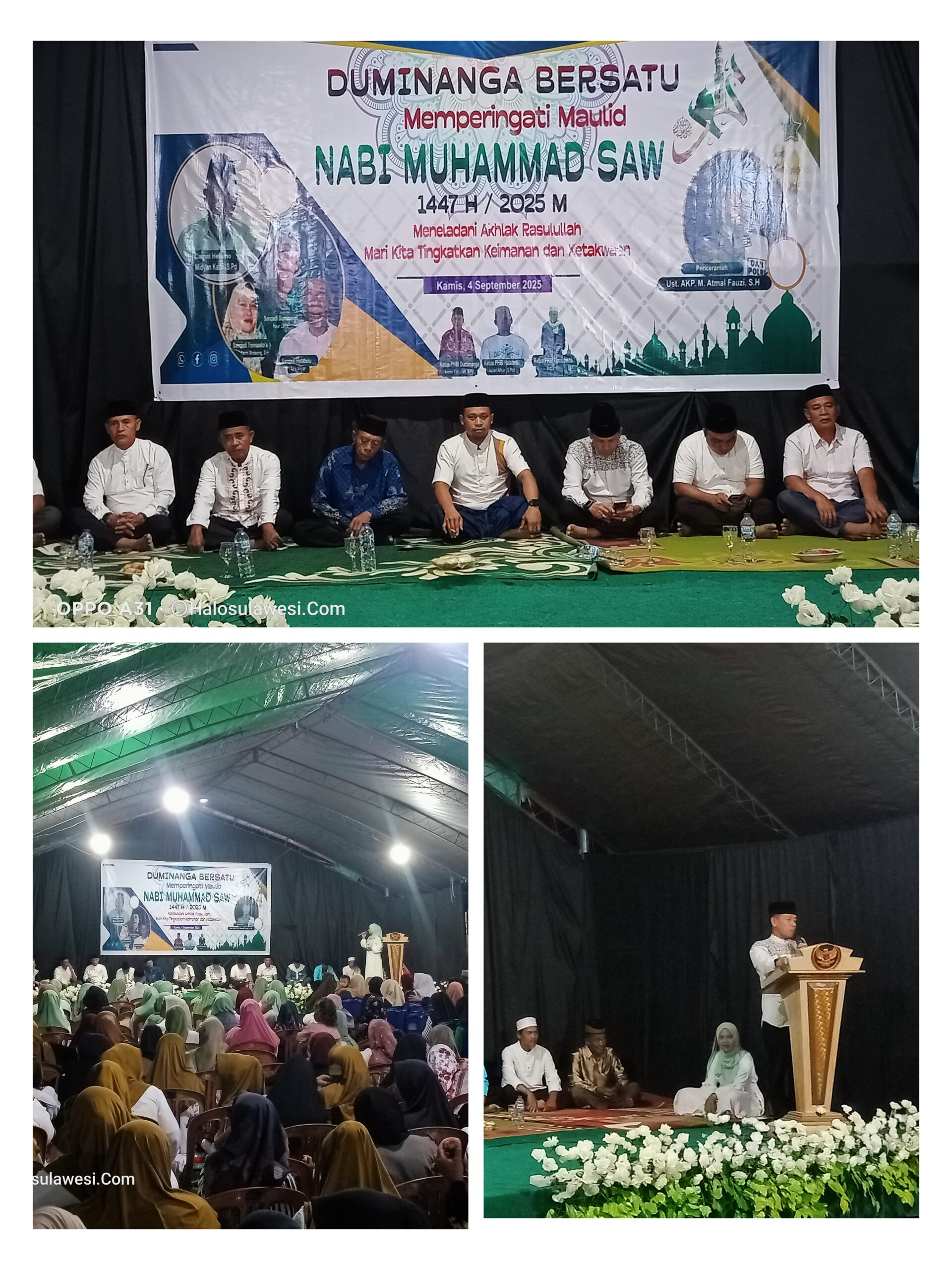 Halosulawesi.com, Bolsel- Pemerintah Desa (Pemdes) Duminanga, Halabolu, Trans Patoa dan seluruh Masyarakat melaksanakan Peringatan Maulid Nabi Muhammad SAW. tanggal 12 Rabiul Awal 1447 H dengan tema “Meneladani Akhlak Rasulullah Mari Kita Tingkatkan Keimanan dan Ketakwaan” dirayakan secara Nasional yang dipusatkan dilapangan Gelora Merdeka Desa Duminanga Kecamatan Helumo. Kamis malam tanggal 4 September 2025.
